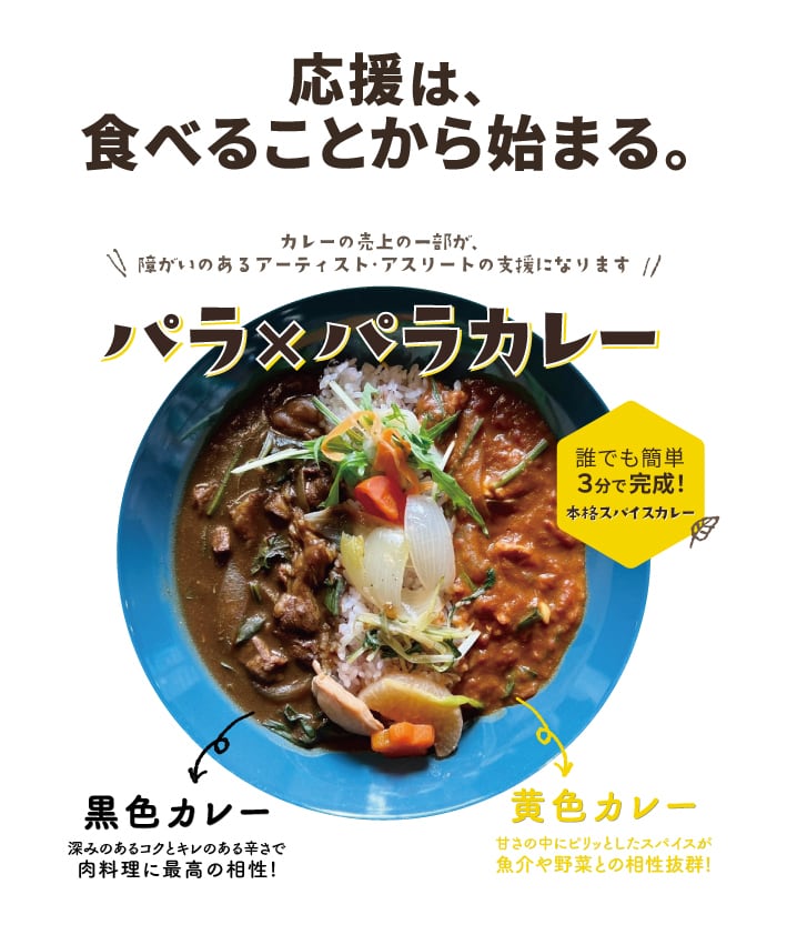 障がいのあるアーティスト(パラアーティスト)をプロデュースする芸術家プロダクションAbeilleと、パラリンピック水泳選手(パラアスリート)の育成を手がける株式会社Qlassicのコラボカレー。