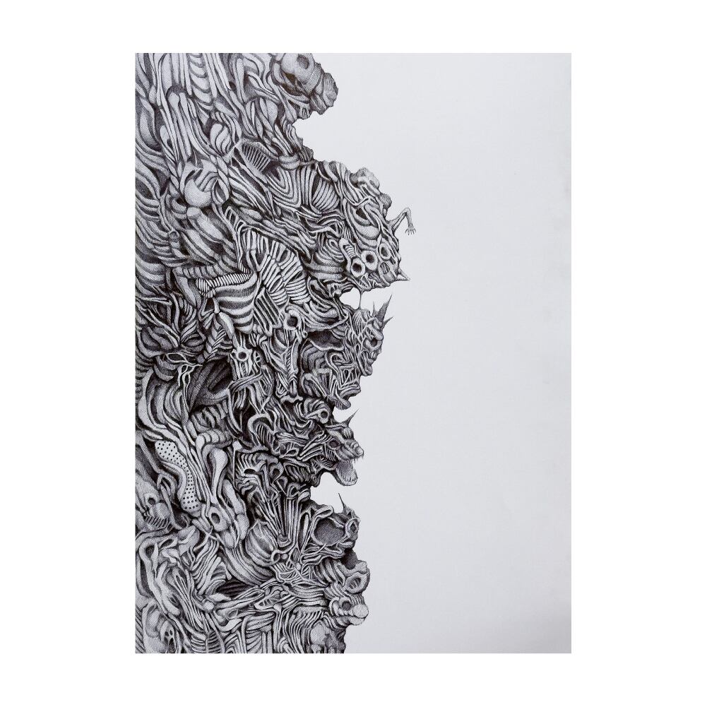 物心ついた時から絵を描き始める。親族や知人が絵を描いていたことから絵が身近な環境で育ち、デザイン系の専門学校にてイラストレーションを専攻。広告系デザインの仕事を退職した後画家の道へ。独学で5年間修行し描き進める中、鉛筆画へと辿り着く。ポーランドの画家・ベクシンスキーにインスパイアされ、生と死をモチーフに「世界は汚いだけではなく、その中には綺麗なものがある」「メメント・モリ」をテーマとして掲げている。